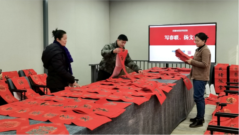 秋绥冬禧,新春将至。为持续推进“艺馨向党”特色党支部品牌创建活动,组织开展“艺馨向党”——“写春联,扬文化”活动。1月9日,在副经理程智力、党委常委曹丹的带领下,公司党委组织部、taptap点点体育师生代表一行将近300幅春联和福字送达下沉社区。