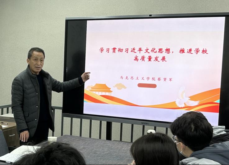 蔡贤军用“新思想、新观点、新论断”三个层面深入浅出地解读了习近平文化思想,围绕形成脉络、内在逻辑、实践基础和理论贡献等方面深刻阐述了习近平文化思想的丰富内涵,引导员工党员读原著、学原文、悟原理,推动党的创新理论入脑入心入魂。以“政治站起来、经济站起来、精神站起来”为线索,引经据典,强调习近平文化思想为中国式现代化提供了精神支撑,引导同志们坚持守正创新,深刻认识新时代文艺的本质要求;秉持开放包容,融通中外,贯通古今;坚定文化自信,勇担新时代文化使命,为推进公司高质量发展贡献力量。