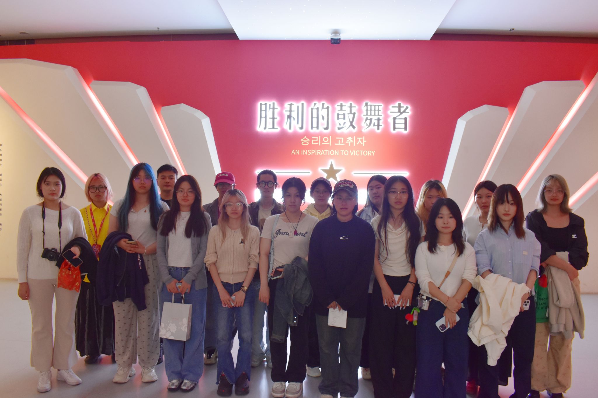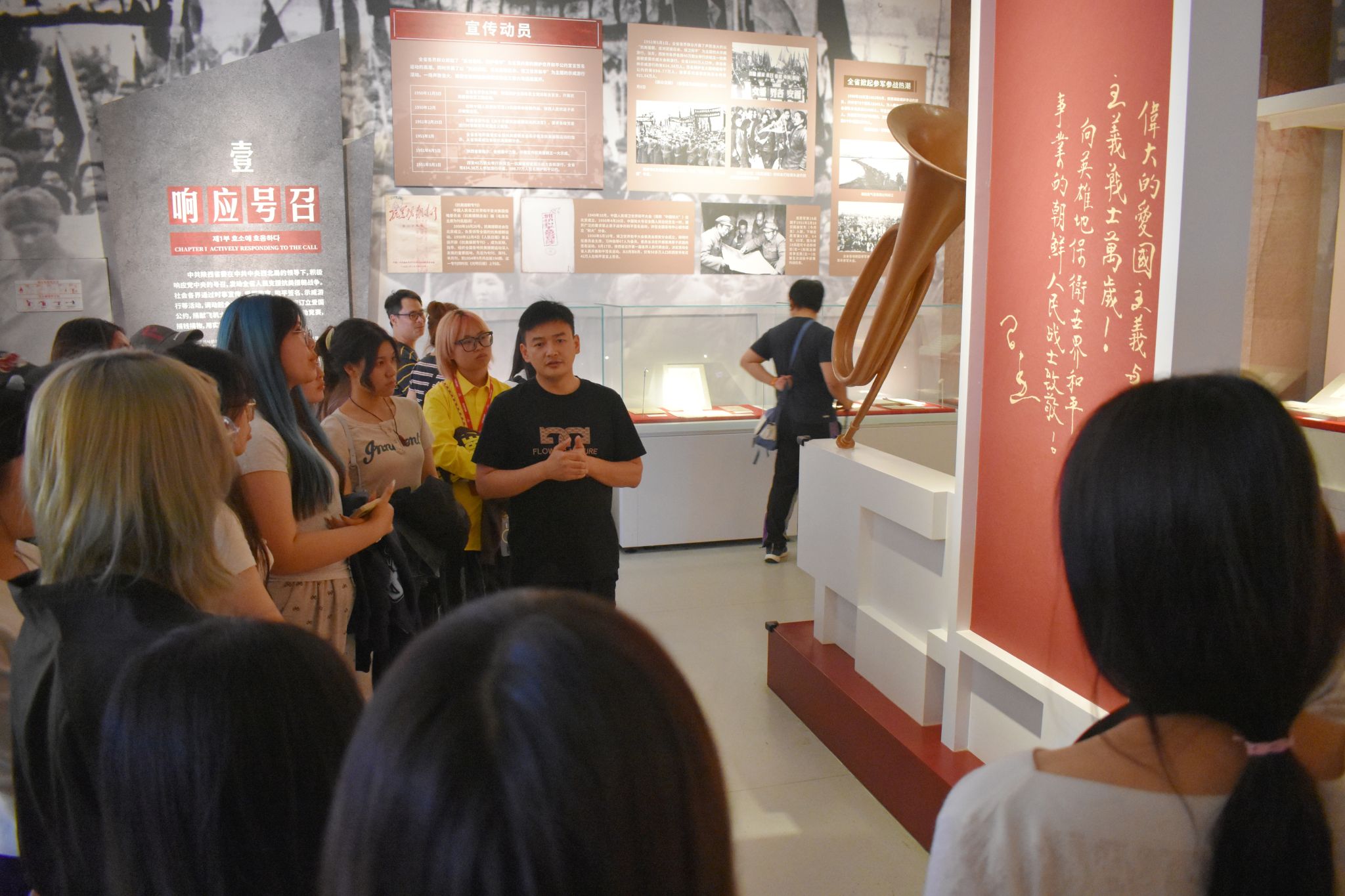 10月13日,师生们走进陕西历史博物馆,共同参观了“胜利的鼓舞者——陕西历史博物馆藏抗美援朝文物展”,该展以中国人民赴朝慰问文艺工作团第五团的视角展开,选取近百张抗美援朝时期珍贵的历史照片及文物进行展陈,生动诠释了西北人民在抗美援朝运动中所作的贡献,以及对前线将士的全力支持,展现了全国人民万众一心、团结一致的家国情怀,激发了同学们的爱国热情。
