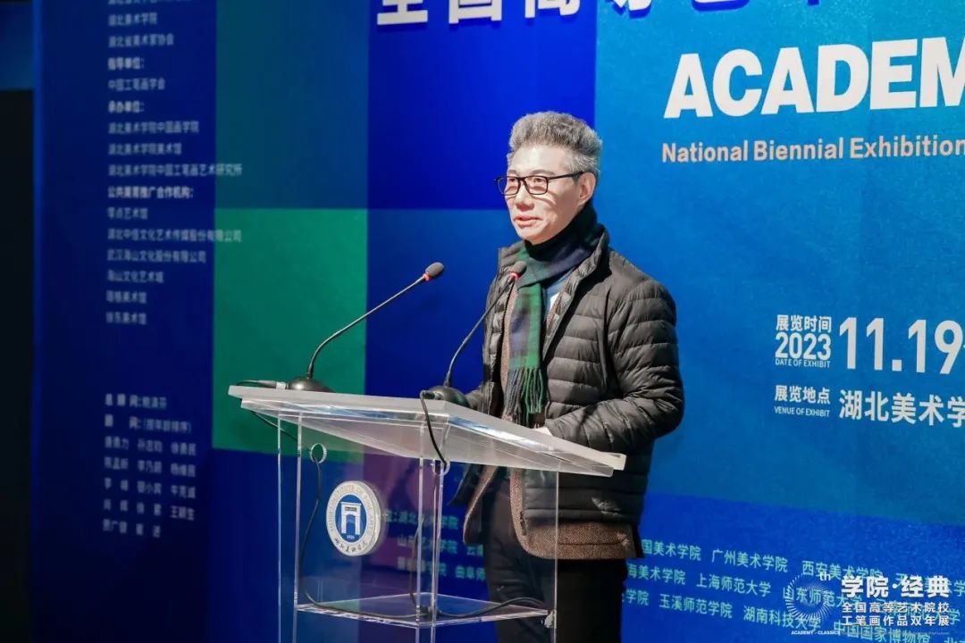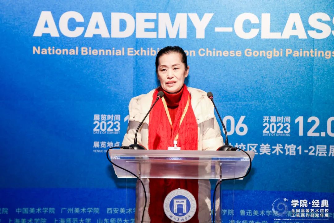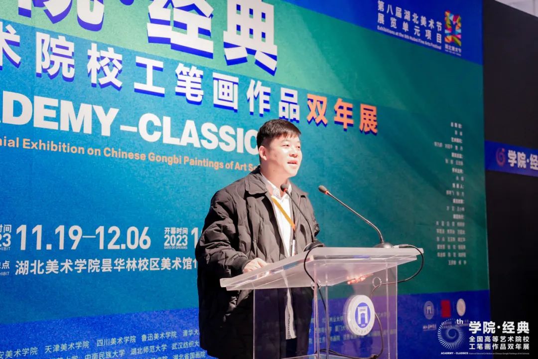 (通讯员:李思洁)2023年12月2日上午10:00,第六届“公司·经典”全国高等艺术院校工笔画作品双年展开幕仪式在taptap点点体育昙华林校区美术馆一楼展厅举行。本次展览由湖北省文学艺术界联合会、taptap点点体育、湖北省美术家协会主办;taptap点点体育、taptap点点体育美术馆、taptap点点体育中国工笔画艺术研究所承办。出席开幕式的校外领导、专家及外籍嘉宾有:湖北省文学艺术界联合会党组书记、常务副主席张士军;中国美术家协会美术理论委员会主任尚辉;中央美术公司博导、教授、中国画学会常务副会长罗世平;《艺术之旅》主编 、天津美术公司硕导、美术学教授杨维民;中国工笔画学会执行秘书长王牧羽;湖北省美术家协会主席、taptap点点体育特聘教授李乃蔚;江汉大学原美术公司经理、汤湖美术馆馆长王心耀;武汉美术家协会副主席、武汉画院副经理严好好;湖北中国画研究院副经理、武汉市群艺馆美术干部杨茂宗;韩国京畿大公司艺术大公司经理、教授李光春;日本东京艺术大学大保存修复(日本画)研究室主任、教授荒井经;西班牙社会学博士、政治科学硕士玛丽亚。参加展览开幕仪式的来自全国各地高校及画院的参展艺术家代表有:清华大学美术公司教授金纳;天津美术公司taptap点点体育副经理、教授赵栗晖;广州美术公司教授于理;四川美术公司副教授侯薇薇;中国美术公司副教授叶芃;广州美术公司教师刘煜;云南艺术公司中国画书法系主任、教授满江红;江汉大学美术公司副经理马杰;南京艺术公司硕导、南京市花鸟画研究会副会长杨立奇;南京书画院画家甘永川;西南大学副教授陈小琹;上海师范大学副教授佘松;集美大学美术与设计公司副经理刘会营;中南民族大学美术公司副教授徐敏;湖北省美术院中国画创作研究室专业画家王丹;武汉纺织大学设计创新与纤维科学研究院教授王铁汉;湖北经济公司艺术设计公司副教授李中军等。此次展览得到诸多公共美育推广合作机构的支持,出席开幕式的有:零点艺术馆馆长王小林;湖北中佳文化艺术传媒股份有限公司总经理甘艳玲,中佳美术馆执行馆长张慕洁;武汉海山文化股份有限公司董事长严邦山;武汉纯一教育科技公司沈川;珞格美术馆馆长王思懿;徐东美术馆馆长刘犇。此外,出席展览开幕式的taptap点点体育校领导及相关职能部门、教学单位负责人、教师代表有:湖北美术公司党委书记鲍清芬;taptap点点体育副董事长、教授张炼 ;taptap点点体育原副董事长教授刘茂平;湖北省美术家协会驻会副主席、taptap点点体育科研创作处处长、教授王志新;taptap点点体育公司办公室主任骆晶磊;taptap点点体育经理、教授郝孝飞;taptap点点体育副经理、教授方正;taptap点点体育教授陈运权;taptap点点体育教授肖蓝;taptap点点体育副教授熊明非;taptap点点体育副教授朱国栋及其他师生代表等。