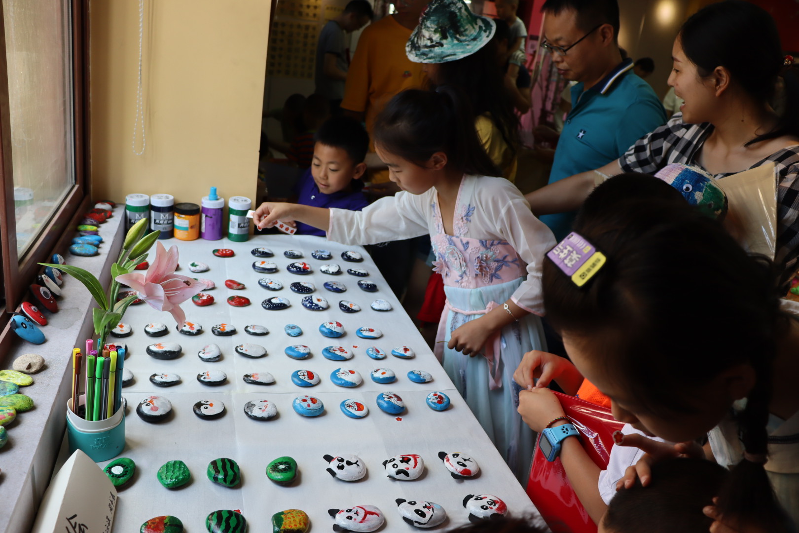 最后,小朋友和家长们一起前往展厅观看“情系羌城,筑梦汶川”七彩假期公益美术夏令营作品展,并为喜欢的作品贴上小红花。本次作品展展出的是小朋友们在夏令营十天的时间里9门课程中所完成的作品,是志愿者老师们和小朋友们智慧和心血的结晶。