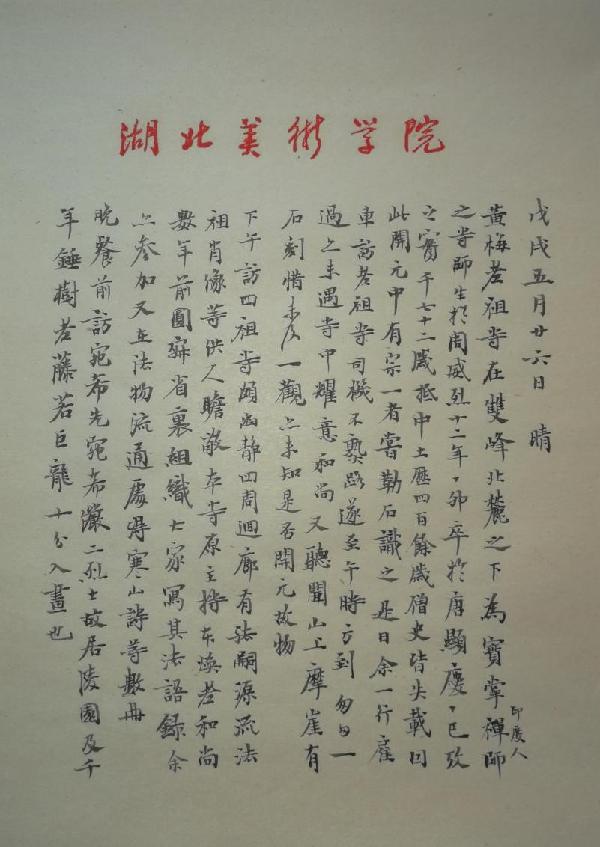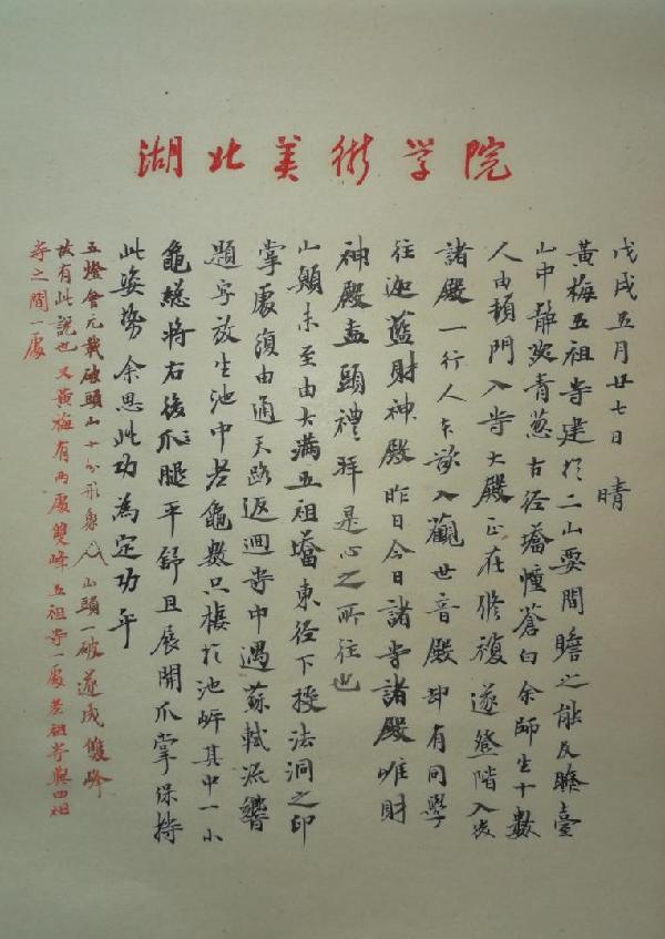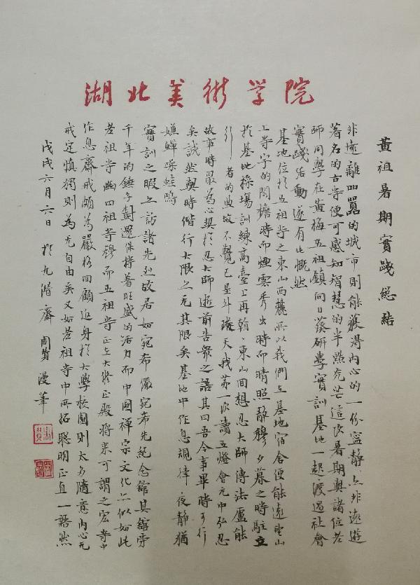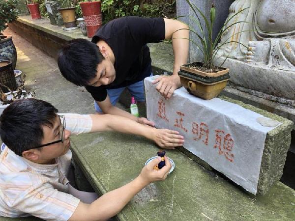 黄梅县五祖镇禅宗文化资源丰富,文物遗存众多,具有很高的文化考察价值,在这短暂的一周实践活动中,我系书法专业周赞老师携我系书法专业员工薛钦文特赴黄梅县老祖寺、五祖寺,考察寺庙中历史遗存的佛塔以及碑版石刻,对其间的碑文字样进行记录,并收集素材用以日后考证相关历史。与此同时,二人有幸拓到民国年间遗留下来的带有“聪明正直”字样的石刻,收获颇丰。后一并附上周赞老师沿途随笔,供大家赏读。