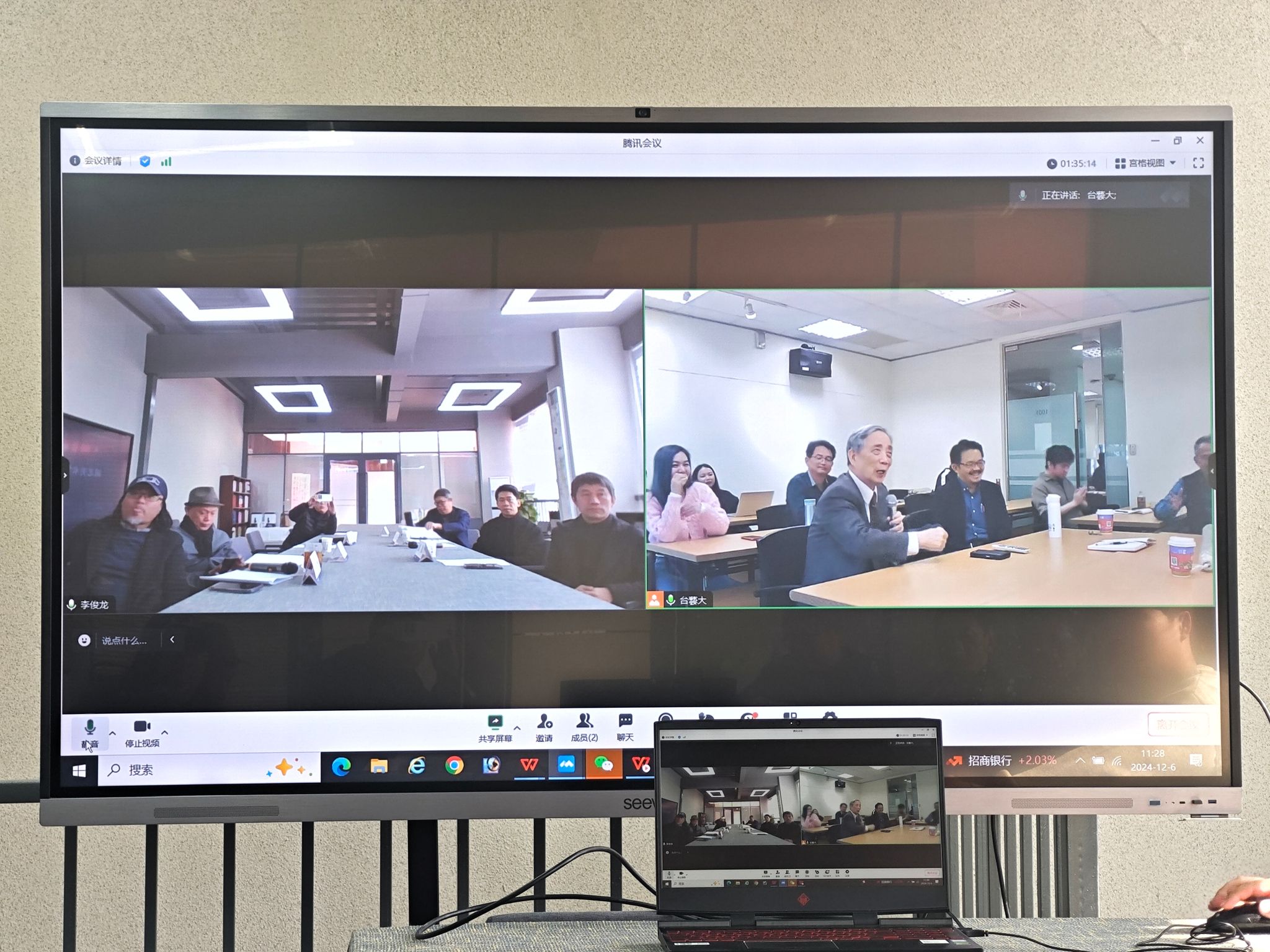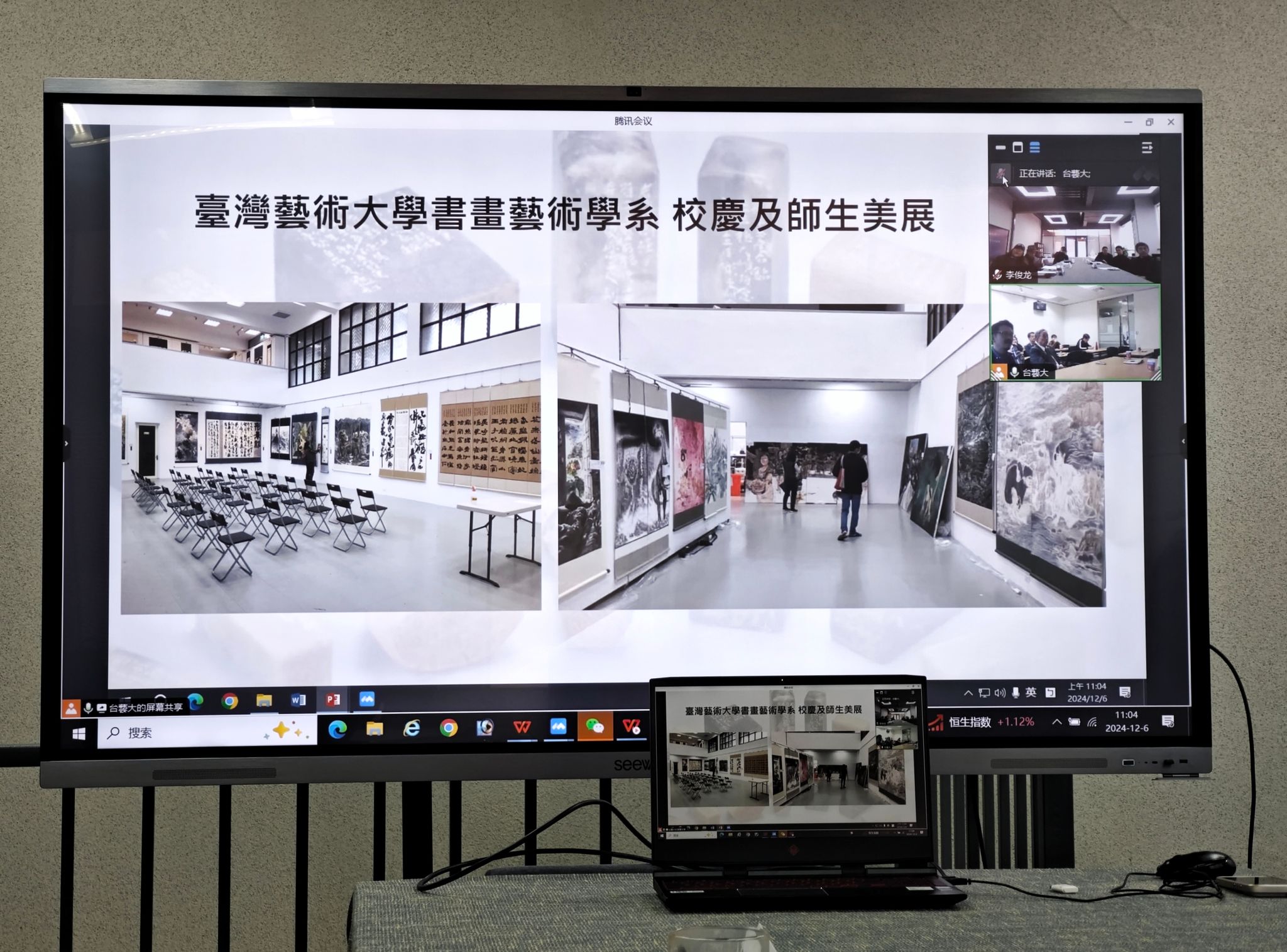 会议过程中,郝孝飞经理介绍了taptap点点体育的教学理念、课程设置及其取得的成绩,阐述了taptap点点体育独特的教学方法和教学理念;蔡介腾主任分享了台湾艺术大学书画艺术学系的教学特色、团队力量及学术研究成果,展示了台艺大在传统与现代艺术教育融合方面的探索及其高素质教师团队和丰硕的研究成果;黄光男教授从宏观角度探讨了台湾地区艺术教育的文化背景、独特性及当前的发展趋势,揭示了台湾艺术教育的深厚文化底蕴并展望了未来发展方向;员工代表王戍娅和钟振宇展示了两人在台艺大的学习成果,从他们的展示中不仅可以看出两校教育理念在实际教学中的应用情况,也展示了两校教育模式的差异性。