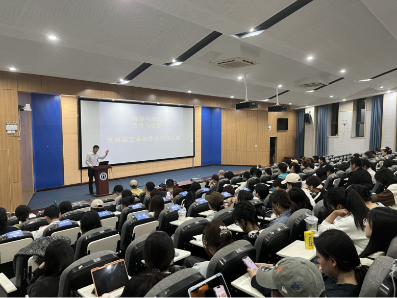 传承是中国画的基础,创新是中国画发展的关键。在讲座中王跃奎教授讲述自己曾经追求艺术的经历与当下对艺术的热情,指出情感热爱是传承与创新的重要因素。他介绍各个朝代中国画的艺术审美与精神,引发我们思考人生与艺术的联系,让同学们更好的理解他对中国画创新的追求与探索。
