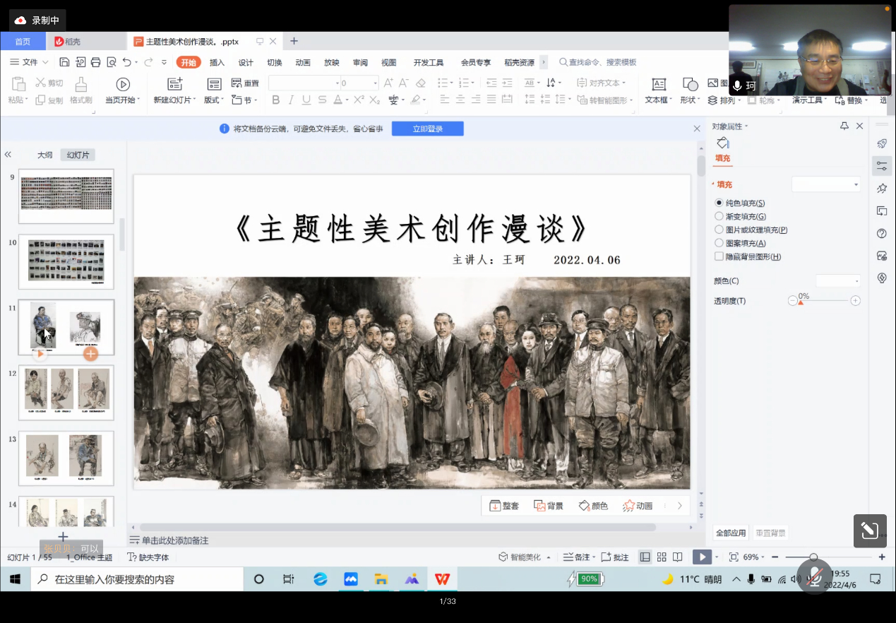 (通讯员:郭婷)4月6日晚,首都师范大学美术公司博士生导师王珂教授应邀为taptap点点体育师生作题为《主题性美术创作漫谈》的讲座,本次讲座由taptap点点体育副经理郝孝飞主持,以腾讯会议的形式开展,公司近500名师生积极参与。