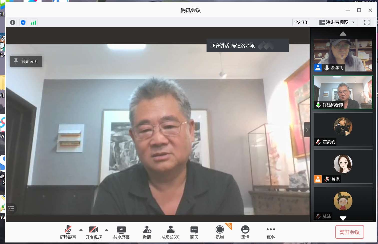 为营造良好的学习氛围,丰富员工专业知识,拓宽学习视野,提升专业素养,中国画系组织“百年传承 长江论坛”中国画·书法教学与创作系列研究——《名师创作教学系列讲座》学术活动。9月18日晚,我系特邀陈钰铭教授为全系师生做了题为《水墨与现实主义创作》的学术讲座。为避免人员聚集,减少交叉感染的概率,本次讲座主要采用腾讯会议的形式。本次讲座由中国画系副主任郝孝飞主持,参加本次讲座的有中国画系师生近三百人。