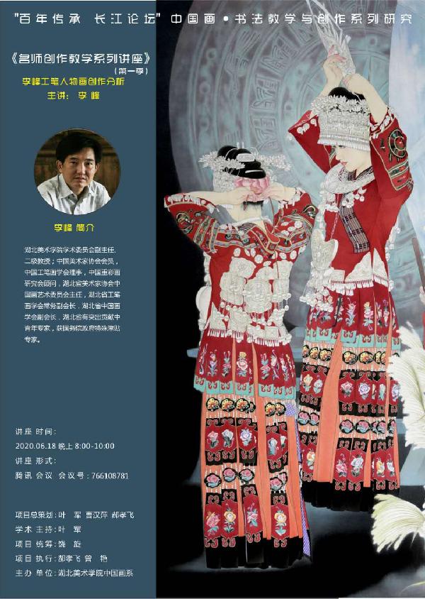 疫情期间,我系一直按照公司“停课不停学”的要求,组织线上教学,为进一步丰富员工居家学习内容,拓宽视野,提升专业素养,中国画系组织“百年传承 长江论坛”中国画·书法教学与创作系列研究——《名师创作教学系列讲座》学术活动。6月18日晚,我系特邀李峰教授为同学们作了一场题为《李峰工笔人物画创作分析》的讲座。本次讲座主要采用腾讯会议的形式,开启了一场别开生面的线上讲座。讲座由中国画系主任叶军主持,参加本次讲座的有中国画系党总支书记曹汉萍、中国画系副主任郝孝飞以及其他老师、员工等近三百人。