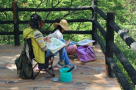 摄影师用手中的精准相机拍摄下眼前的美景,而我们用手中的画纸和画笔定格眼前的自然。