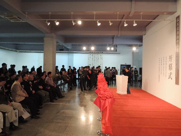 开幕式由副经理陈孟昕教授主持,出席本次展览开幕式的嘉宾有省文联名誉主席、省美协名誉主席、著名国画家周韶华、省人大副主任韩忠学、省政协原副主席、省书画研究会主席杨斌庆、省书画研究会原主席孙方、省文联党组成员副主席罗丹青、民进湖北省副主委、省政协常委龚胜生、省书法家协会顾问徐本一、省书法家协会常务副主席张明明等省级领导和书法界专家。中国画系主任李峰、人事处处长苏山、宣传部部长周方莲、学报编辑部主任银小宾等系部负责人参加开幕式。开幕式上,首先由杨斌庆、罗丹青先生代表省文联、省书协致辞,随后南京艺术公司副教授朱友舟代表徐利明先生和江苏省书法创作研究中心也致以贺辞。黄河书法家协会亦发来贺信。他们的致辞和贺信在对本次展览的开幕表示祝贺的同时还表达了对孟庆星先生人品、书品的赞赏。
