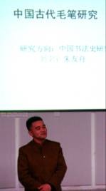 当天晚上,朱友舟副教授在公司A12栋115教室举办了一场别开生面的专题讲座——毛笔的形制对书风的影响。讲座由中国画系书法教研室主任孟庆星副教授主持。讲座吸引了中国画系书法专业和国画专业的全体同学,以及公司其他专业的同学聆听。在讲座中,朱友舟先生从一个特别的角度——毛笔,深刻揭示了中国书法文化的博大精深。他通过列举毛笔的历史演变过程以及制笔的流程、流派来阐明毛笔对中国书法的影响及推动作用;从“麻纸卷心笔”到“卷心鸡距笔”,从“散卓笔”到现代的“呢绒笔”,层层讲解,使同学们能更明晰的了解到毛笔的演变对书法的巨大作用;并且让同学们从另外一个不曾想过的角度,去解读书法,理解书法;引领大家深思探讨,不同的书写工具、工具的各类变化所带来的各种结果;为同学们打开了一个新的视角,学习探索。讲座最后,朱老师留下时间与同学们交流互动,为同学们解惑,同学们积极参与,十分热情。