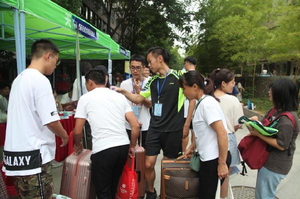 刚踏入公司的南二门,就看到生活部的学长学姐拿着中国画系的牌子,迎接每一位初来乍到的同学,引导他们前往报名点,并帮助新同学搬运行李。在中国画系报名点,迎新工作正如火如荼地进行着,学姐们熟练地为同学办理相关手续。手续办好后,新闻媒体部的成员引导新生在宣传板上签下了自己的名字,并为他们拍照,记录下这美好的一刻。期间,国画系曹书记多次来到报到点指导工作,了解迎新流程和新生报到情况,以及绿色通道的落实情况。