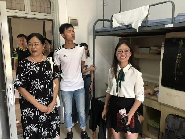 经过一天辛勤的工作,新生陆陆续续完成了新生报道流程。下午四点,国画系曹书记、辅导员曾老师和周老师,以及员工会成员走访新生寝室,曹书记亲切地慰问新生,欢迎同学们到来。她表示,同学们能相聚国画系,能彼此成为同学,成为室友,是一种奇妙缘分,希望同学们大学四年能和睦相处、互相帮助、努力学习,不负青春。