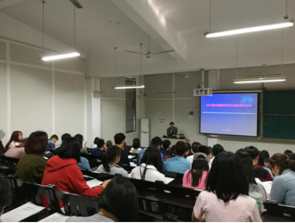 刘杰老师首先详细讲解了毕业生就业协议书、就业推荐表的填写要求,介绍了征兵工作、“三支一扶”等就业渠道的优惠政策,说明了离校手续、个人档案、户口迁移等事项的办理步骤。接下来,刘杰老师强调了毕业生安全、文明离校的要求,结合我系理想信念教育实际,做了爱校荣校教育以及感恩教育。