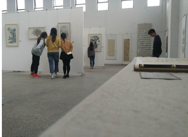 本次展览是对中国画系教师教学成果、员工学习成果的一个集中展示,体现了中国画系师生双方良好互动,教学相长的优良学风。作品多以纸本为载体,手法各异,创作题材、内容形式各不相同,形式多样、风格鲜明,从书法上看,有方正规矩的正楷、也有飘逸清秀的行书;从国画作品看,有气势宏大的写意山水花鸟画,亦有细致的工笔人物肖像图。吸引了众多同学前来观展,给予了很高的评价。