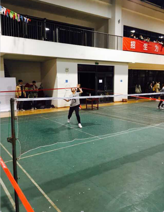 下午5时许,当羽毛球比赛开始。选手们正式入场,斗志昂扬。三个项目的比赛,都异常紧张、激烈。各位健儿在赛场上挥洒着汗水,只见空中羽毛球像一道道闪电利箭,在空中不停的来回激战,让人目不暇接。最后,我系男子单打和女子单打比赛中打败了环艺系,顺利晋级。混双比赛同样精彩,可惜以小比分惜败。