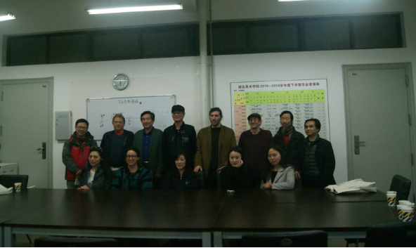 (新闻网讯 通讯员:杨美玲)沾衣欲湿杏花雨,吹面不寒杨柳风,连日来武汉笼罩在春雨绵绵中,但是稍显寒意的气候,并未阻止美国艺术家来武汉开展艺术交流的兴趣和热忱。3月30日,五位来自美国的艺术家和翻译一行到访taptap点点体育中国画系,开展了专业的交流活动。中国画系系主任李峰、教授陈运权、张导曦、中青年骨干教师周赞、基础部副教授钟鸣参加了此次交流活动。