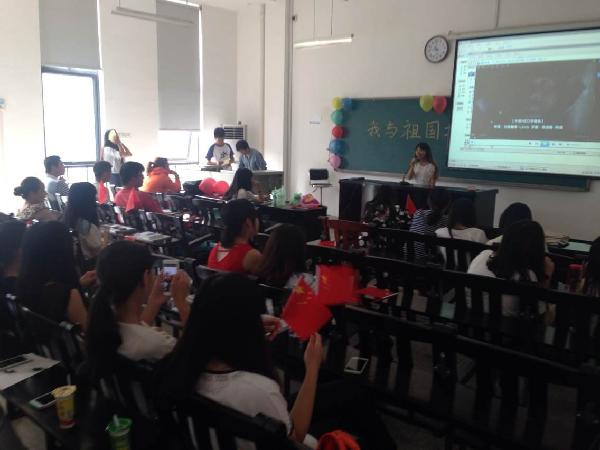 六十五载风雨历程,六十五载成就辉煌。各个班级经过精心策划,给大家展现了全员参与、形式多样、内容丰富,充分表达全体学子爱国热情和奋发努力的精神风貌的班会活动。班会通过奏国歌,全体同学庄严肃立,齐声合唱,唱出了祖国历经艰难而不衰的坚韧和为了祖国的昌盛而拼搏的决心;采取主题讨论、歌唱祖国、诗歌朗诵等新颖多样的形式,切合我与祖国共成长的主题,充分展现同学们的全面发展与积极向上的心态;通过观看相关PPT、励志视频,充分调动了全体员工参与班会的积极性,气氛热烈、深入人心,达到教育目的,富有实效;各班班委及时对班会进行总结,活动圆满结束。