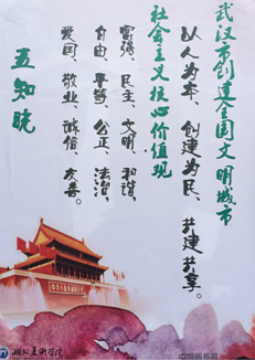 正值武汉市创建全国文明城市、公司开展“创建文明城市、践行社会主义核心价值观、建设文明和谐校园时间活动”之际,我系通过营造氛围、广泛动员、融入专业等方式,在全系开展培育和践行社会主义核心价值观系列活动。