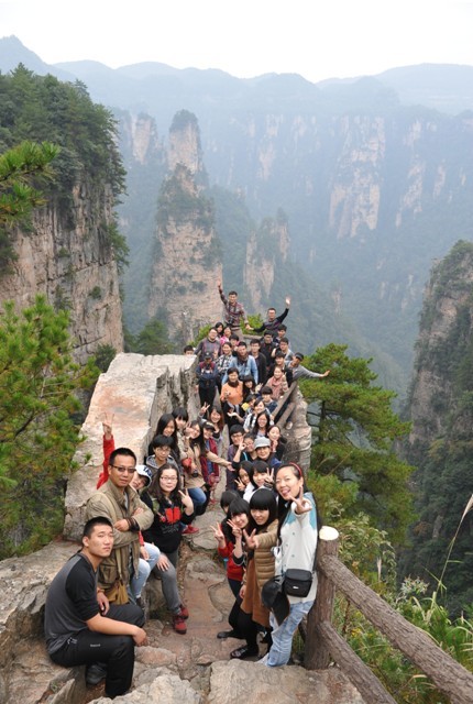 清晨旭日升起,眺望远方山间云雾如瀑布,如流水,似惊涛骇浪,似万马奔腾,踏上云端,俯视眼前的磅礴气势,可谓气吞山河。顺山间石板小路而下,顺金鞭溪缓缓前行,一步一景,一景一画,连绵不绝。伴上潺潺溪流,鸟儿轻鸣,感觉特别的舒适和惬意,不一会斑驳的阳光却又偷偷地透过树影斜照在你我的身上,暖暖的,这种感觉也是妙不可言。下午时分,坐进缆车,则是饱览无遗,不过也不敢多向下看,向远处极目横扫,此时身处高处,所见情景与地面有很大不同,看的范围大了,视角也在不停地变化,只见一个个小而高的山峰像雨后春笋般从眼前掠过,加上云雾缭绕,好似天界。回到山顶,附看,下临深渊,峰柱林立、谷底群峰尽在脚下,每座山峰造型各异却无不形态逼真、惟妙惟肖、栩栩如生、千姿百态、呼之欲动,怎不让人流连忘返。