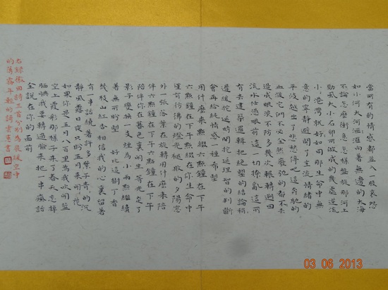 周:杨云慧的小楷作品是关于林徽因的诗歌。字体较小,篇幅长,这是耐力与细心的考验,文字的构图别出心裁,其作品震撼令人赞叹。还有在瓷器上创作,选材别具一格。白岩峰的基本功了得,技法全面,无论字、画、印都有很深的造诣。