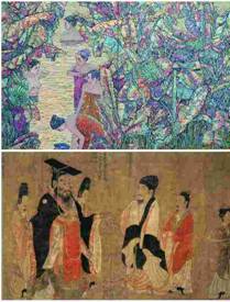 为了让大家进一步认识现代重彩画中材质的重要性,张老师同时介绍了传统工笔画,其中包括名作《历代帝王图》及敦煌石窟壁画等,以此将中国传统绘画与现代绘画进行对比,进而谈到了现代绘画中一些新的表现方法。“绘画表现应博取众长,不应局限于古代、现代、中国或西方。”张老师的讲解令我们的思想得以飞跃。