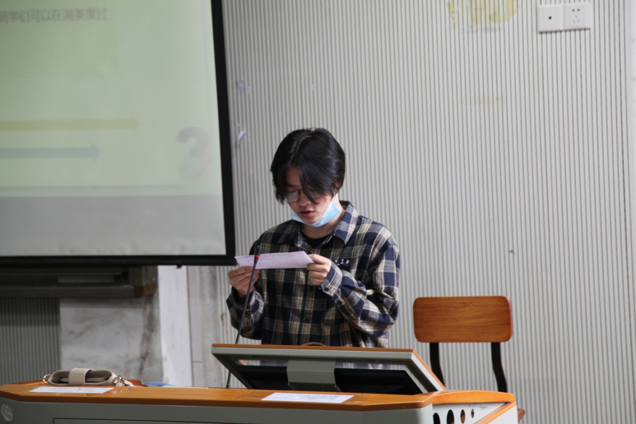 最后,员工班主任自我介绍并对新生的到来表示了热烈的欢迎,希望同学们能够抓住机会,珍惜、享受大学时光,积极进取、求真务实,坚定理想信念,勇于实践创新,不忘初心,不负使命,为自己创造辉煌的未来,成为更好的自己。(通讯员:喻晨、宋颖)