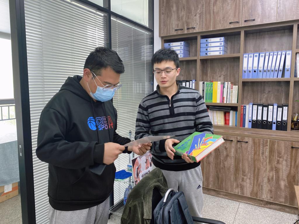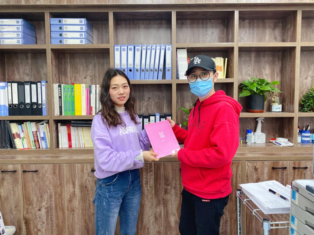 辅导员曾艳和王鹤聪为20届毕业生发放毕业生作品集