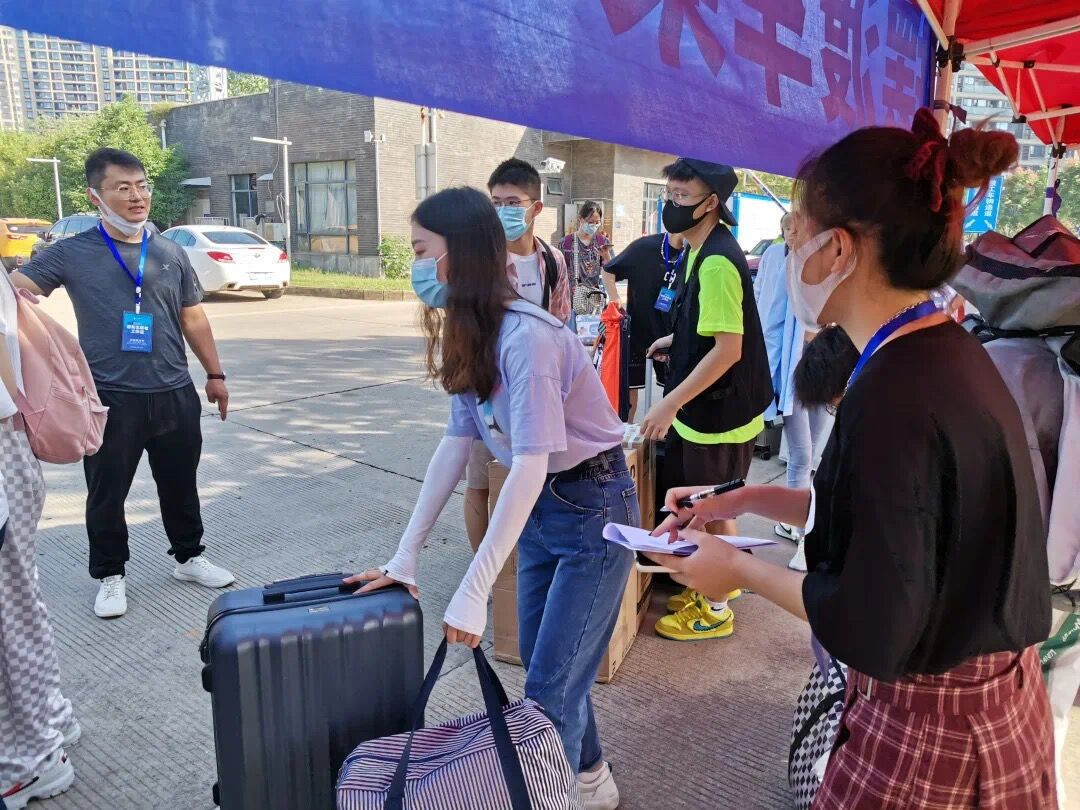 新生于9月22日、23日两天按学号单双号返校,员工会干部提前将志愿员工分为一对一志愿者与机动志愿者,一对一志愿者们一人对应一个寝室,负责对接好每位员工的到校时间,以保证能够及时帮助新生将行李转移到摆渡车上并送至宿舍区;机动志愿者们负责在宿舍区接应,搬运行李且带领新生入住寝室。