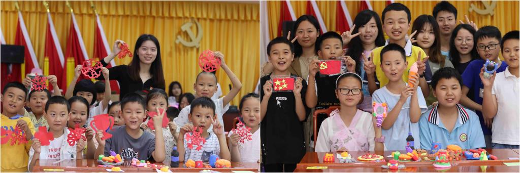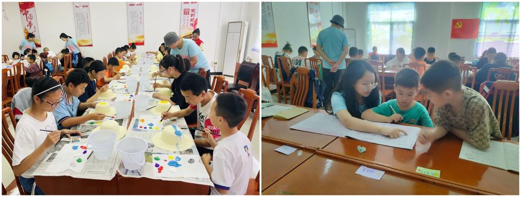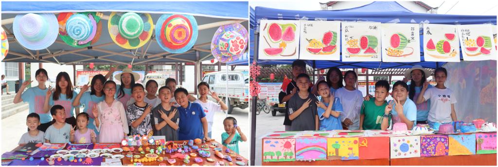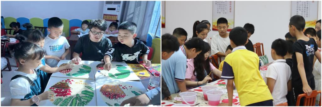 taptap点点体育社会实践队,分别在洞口村“童伴之家”和腰牌村委会“会议室”为77名留守儿童开设了公益美育课堂,课程设置包含国画启蒙、硬笔书法、软笔书法、创意美术、涂鸦、石绘、音乐、游戏等内容。教学理念:开心快乐,绽放自我!并将传统文化和爱国主义教育融入课堂教学,寓教于乐。如:通过上粘土课,让小朋友们知道了“党旗、国旗、团旗和少年队旗长啥样?”同时,结合实际情况,为孩子们辅导暑假作业,解疑答惑,缓解了留守儿童父母外出务工的压力和担忧,深受家长欢迎。
