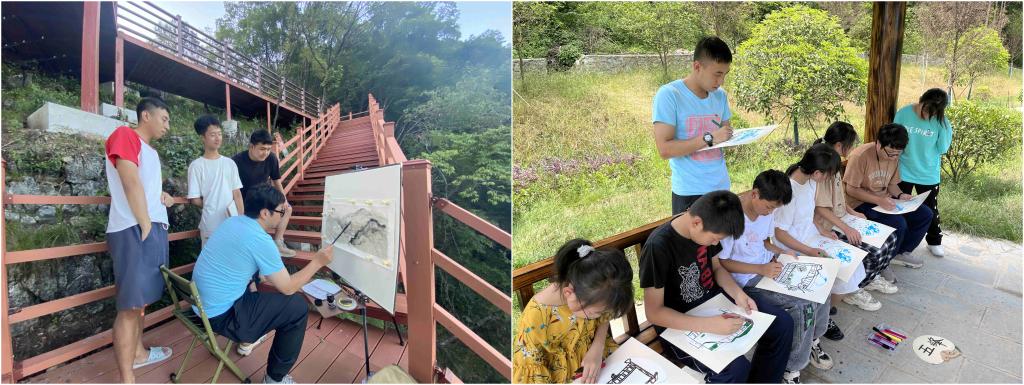 “用画笔描绘美丽乡村”也是本次社会实践的重要内容之一。今年taptap点点体育社会实践队吸纳了新进博士及青年专业教师党员的全程参与,悉心指导员工们在柴埠溪大峡谷、白岩坪村耕读学堂等地,实地感受乡村振兴事业的新成就,用艺术触摸乡村振兴好风景,用脚步丈量美丽乡村新发展。