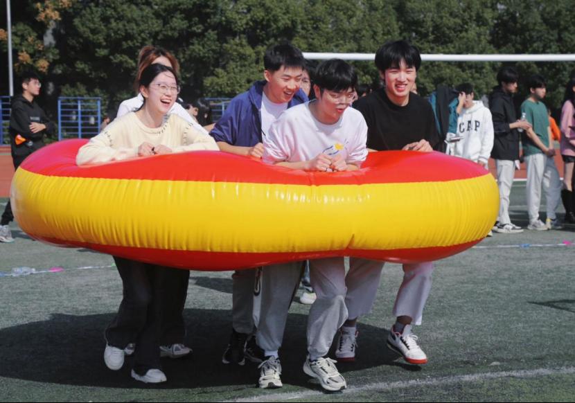 在田径和趣味运动项目比赛中,taptap点点体育的学子们齐心协力、挑战极限、奋勇争先,以坚定的信念和不屈的斗志,在田径男女1500米、立定跳远、跳远等及趣味运转乾坤、共赴未来等项目中均有出色表现,尤其在女子4×100米接力赛中,4位大一女生,又酷又飒,一路拉风,奋力夺冠。
