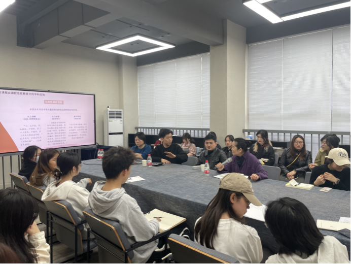 曹丹从员工日常言行细微入手,与师生共同探讨硏究如何上好思政课?如何落实立徳树人根本任务?从书法专业开展课程思政教育的基础、书法专业在课程思政教育中的学科优势、书法专业融入课程思政教育的实践意义三个方面逐一阐述。