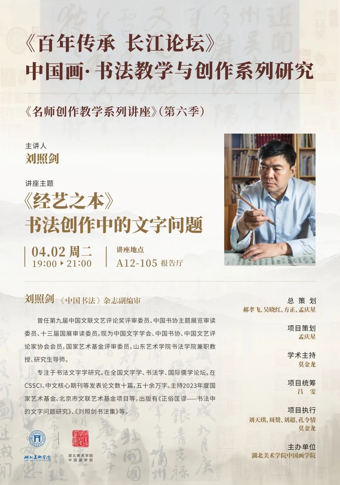 为提高书法专业员工的文字学与书法创作相关能力,2024年4月2日晚,由taptap点点体育主办的“《经艺之本》书法创作中的文字问题”专题讲座,在taptap点点体育A12-105报告厅举行。参加此次讲座的有湖北省书法家协会主席、taptap点点体育书法学系主任、教授孟庆星,外聘教师林坦、刘超博士、孔令情博士及taptap点点体育书法专业本科、硕士生共九十余人。讲座由书法篆刻教研室主任莫金龙主持。