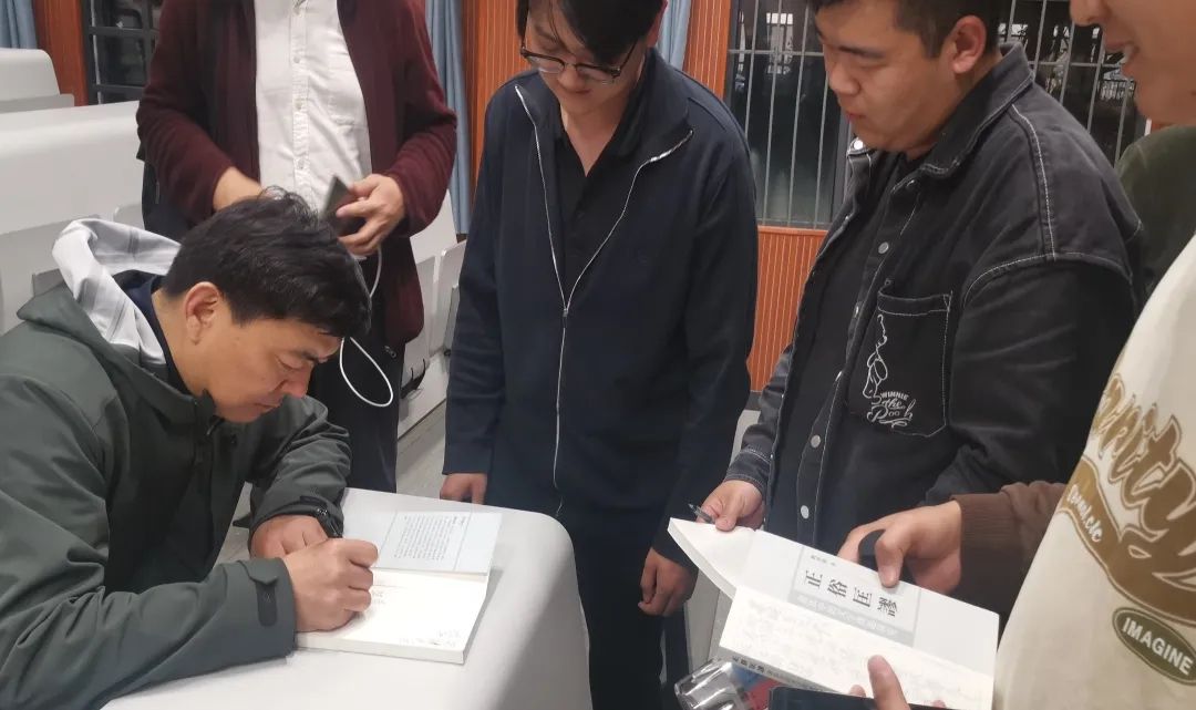 最后,刘教授在专著上为同学们签名以资鼓励,随后大家齐聚一堂合影留念,并在一阵热烈的掌声中圆满结束。