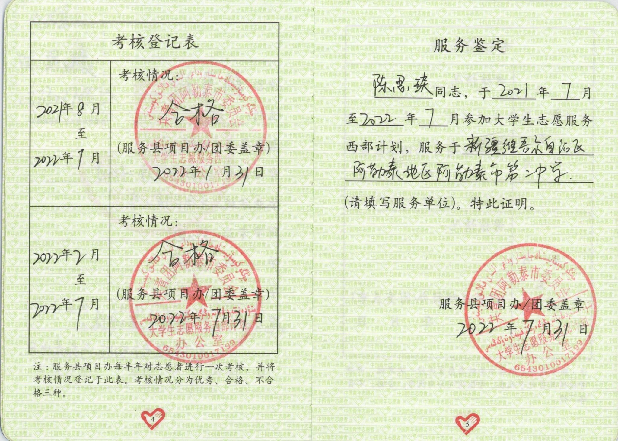 陈思琰同学获“阿勒泰市老员工志愿服务优秀志愿者”