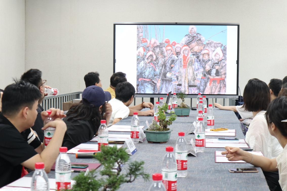 面对PPT展示出公司现任教师的代表作品,郝经理与青年教师共同向医生们逐一分享、解读和交流。医生们在欣赏的同时,不禁发出询问和赞叹之声,被中国画与书法篆刻艺术深深吸引。