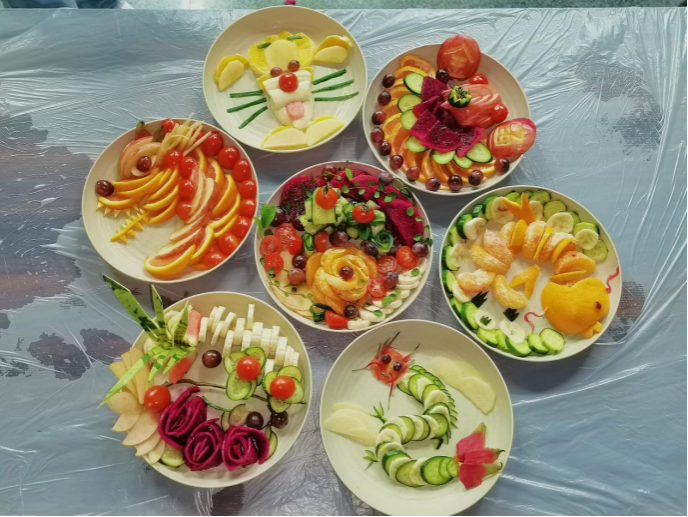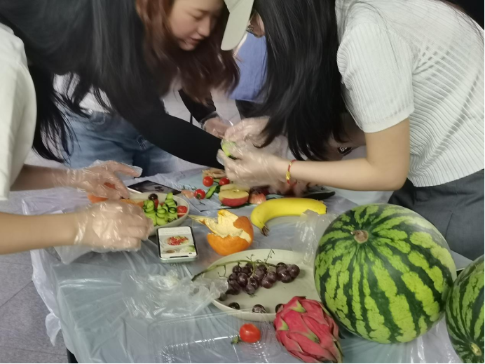 同学们分组进行创作,他们大胆发挥想象,用灵巧的双手将各种水果切割、组合、搭配,制作出形态各异、精美巧妙的水果拼盘。这一过程不仅锻炼了同学们的动手能力,更在无形中促进了他们之间的沟通与协作,增强了团队凝聚力。