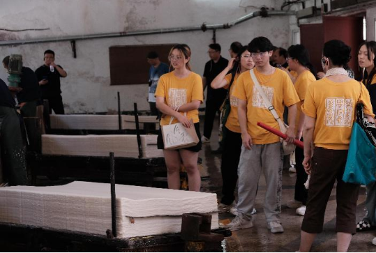 开展调研访谈,提出一项务实建议。随着科技的发展和人们生活方式的改变,宣纸制作工艺要求精湛、工序耗时三年、工场环境艰苦、工资劳保有待改善的客观现象,如何才能确保中华优秀传统文化代代相传不断流?师生们通过调研访谈,尝试性的提出如何改善和提升对“宣纸工”的价值尊重和劳动保障的合理化建议,为有续推进保护宣纸“非遗传人”延绵不断建言献策。