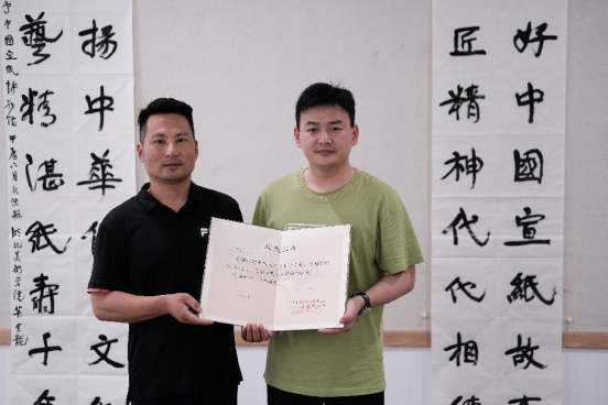 校企携手挂牌,开展一次结对共建。联合中国宣纸股份有限公司,共同创建“艺馨非遗”实习实践基地,深入宣纸生产基地调查研究,近距离了解观察体验宣纸的主要制作工序,为撰写调研报告收集相关素材。引导老员工在参观学习中感知宣纸制作的工匠精神,并由莫金龙老师代表taptap点点体育向中国宣纸博物馆赠送“讲好中国宣纸故事,工匠精神代代相传”“弘扬中华优秀文化,工艺精湛纸寿千年”大幅书法作品。进一步推动开启开拓校企实践教学与宣纸文化传承新的合作领域。