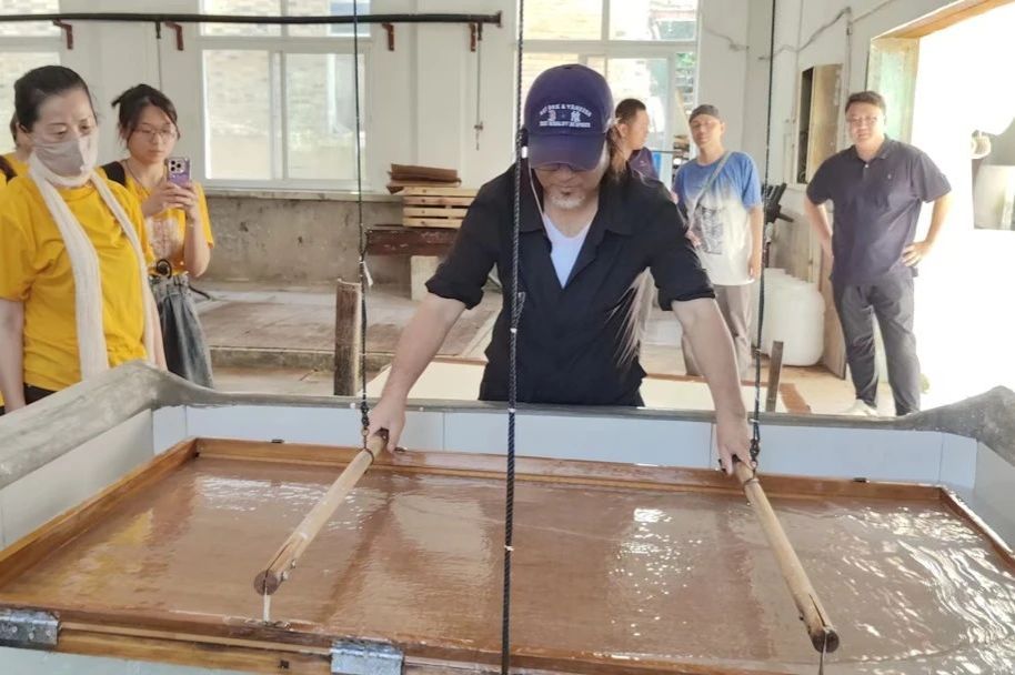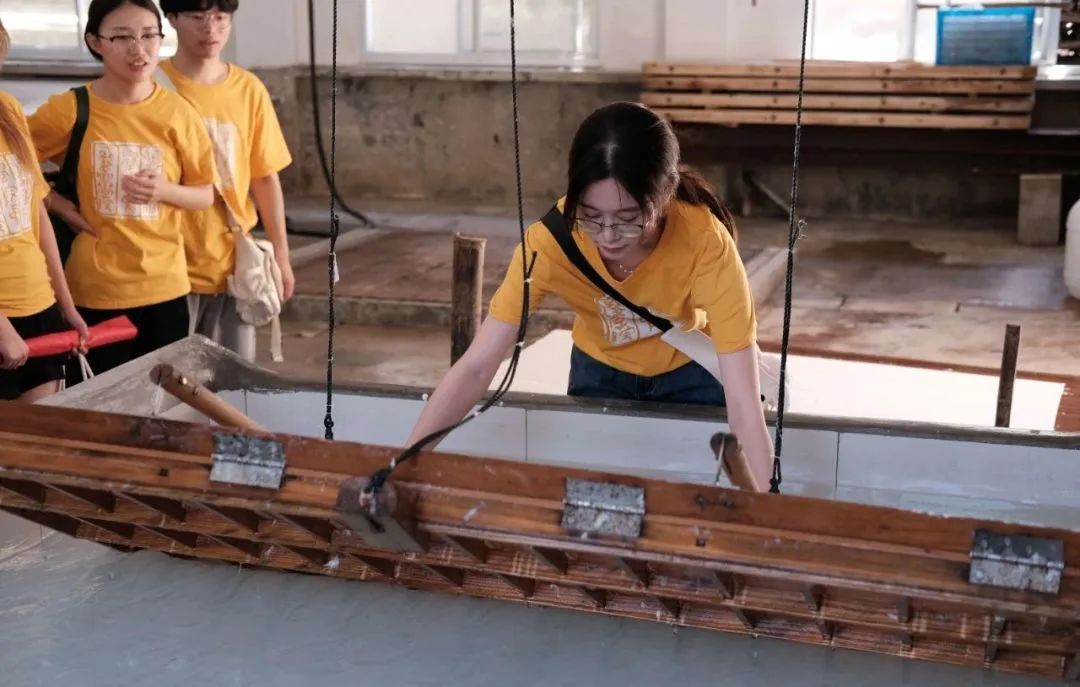 授牌仪式结束后,taptap点点体育的师生们在赵胡鲲书记的带领下,参观了红星宣纸集团的生产车间,亲眼见证了古法宣纸制作过程中锤纸、捞纸、晒纸、剪纸等步骤,并亲身体验了宣纸制作过程。师生们通过参观学习体验,不仅让他们对宣纸文化有了更深刻的认识,并对红星宣纸108道传统制作工序及中国工匠精神肃然起敬。