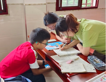 22级国画何欣悦:暑假期间,我来到了宜昌市五峰县湾潭镇小风池村开展为期21天的社会实践。我们与孩子们共同成长与进步,为他们进行课业辅导,为他们打开国画与书法启蒙的大门。在社会实践中,也会遇到不想写作业的贪玩的小朋友,我们会耐心开导并积极辅导。同时,我们一同感受丹青之美,以丹青浸润童心。