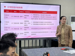 11月12日在A1二楼会议室,员工第一党支部书记马老师为学员详细讲解了党章和党的基本知识,包括党的指导思想,党的性质、宗旨、纲领和路线方针政策,党员的权利和义务、党支部的设置等内容。她要求学员要深入学习党的基本理论知识,不断提高自己的政治觉悟和思想境界。