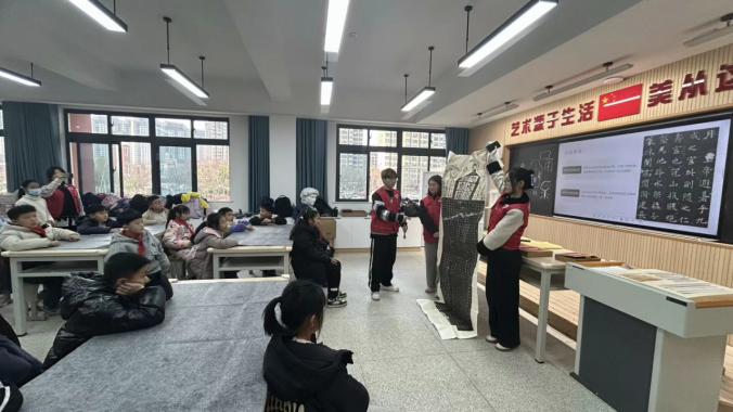 本次书画培育行动采取“书法课程为主,国画课程为辅”的社团教学模式。课程开启之初,志愿服务队成员系统阐述了书法的起源与发展历程。为使员工们更深入地理解书法文字在不同历史时期的演变,将书法发展划分为先秦、秦汉、魏晋、唐宋四大阶段,并精心挑选了各阶段的经典法帖进行深度解析。通过展示汉代简牍仿品、礼器碑、九成宫醴泉铭、兴福寺半截碑拓片仿本等经典教具,引导员工对比刻石书法与手写书法,探究石刻与手书墨迹的差异,掌握书体分类以及隶书向草书、楷书的转变等难点知识。