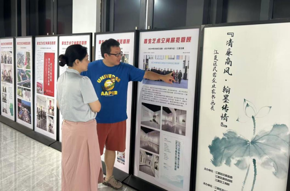 活动伊始,普生创艺园总经理刘浏亲自引领师生参观普生艺术展览中心。众人一同参观了正在举办的“清廉商风 翰墨传情”江夏区民营企业书画展。此次书画展以艺术为载体,生动展现了清廉文化与商业精神的交融之美。参观尾声,刘浏对艺术中心自开馆以来主办及承办的各类艺术展览进行了全面且细致的介绍。在参观过程中,师生们深入了解了创艺园完善的设施配备、独特的文化环境搭建,真切感受到其将传统文化底蕴与现代年轻元素巧妙融合的发展理念与鲜明特色。