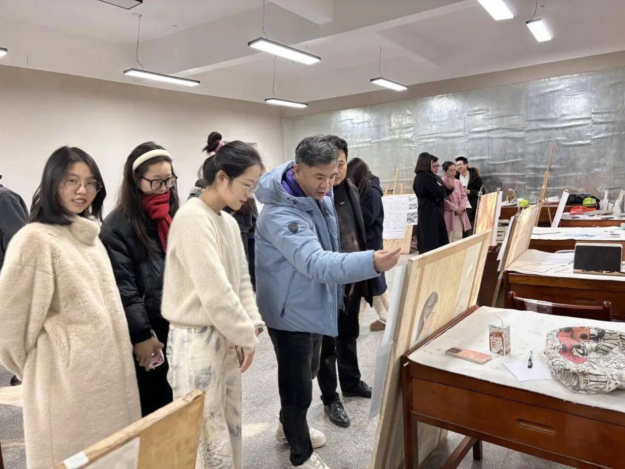 评审小组依次进入各个班级,听取员工汇报,并就创作构思、画面表现、材料选取及创作难点等进行了现场指导,提出具体修改意见与优化方向。熊明非副经理强调,毕业创作是本科教学的重要成果,同学们要攻坚克难,精益求精,将个人艺术探索与时代精神、现实生活紧密结合,创作出有温度、有深度的作品。朱国栋副经理要求导师团队持续跟进,落实“一对一”辅导,帮助员工明确修改目标。他强调,在创作中既要体现扎实的传统功底,又要展现当代青年艺术家的创新视野与责任担当。