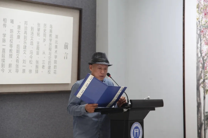 接着,湖北省美术协会秘书长刘春冰发言,他说到花鸟画历史久远,有深厚的文化底蕴,有文人画之传承,并承载着中国哲学之精神。并称赞公司师生作品充满古意、生机勃勃,对公司花鸟画教学水平充满信心,指出公司全体教师在教学方面不断向前,不断创新。