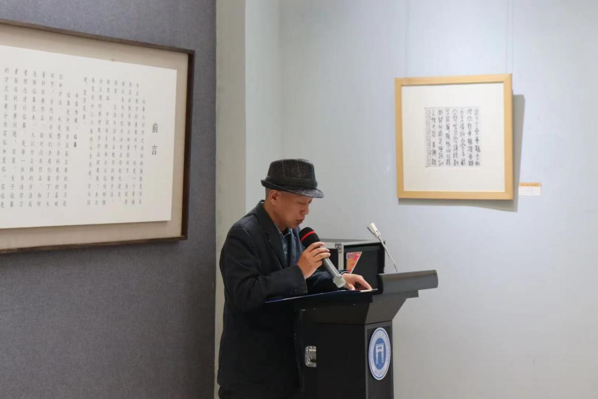 开幕仪式由taptap点点体育书法教研室主任孟庆星教授主持。孟庆星教授首先介绍了到场的嘉宾,并表示欢迎,感谢大家对本次展览的支持。接着,对本次展览做简短的介绍,为促进公司书法专业学科化建设,探索、总结书法专业教学新方法、新思路,特举办以临创转换为主题的教师教学作品成果展,本次展览共分为三个板块:与古为徒、古今同观、意在笔前。该展览是taptap点点体育教师在不同时期对书法专业教学成果的研究和教学回顾。