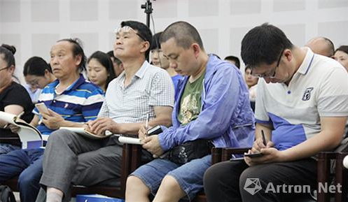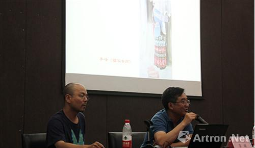 李峰教授的讲座分为两个部分:第一、分析历届“全国美术作品展”的获奖代表作品;第二、讲解关于中国画创作的几个问题。在上午的授课过程中,李老师首先对全国美术作品展的届展特点进行分析,进而围绕着传统性、写实性和前卫性,剖析了第六届至第十二届全国美术作品展获奖作品在创作题材、人物造型、画面构图、绘画技法和绘画材料上的特点。
