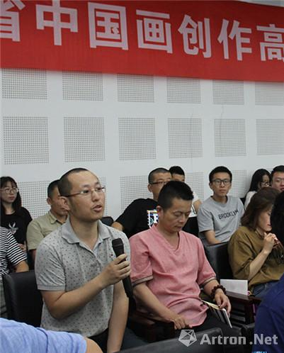在下午的授课环节,李峰老师分别从关于写意性、关于中国画的意象造型、关于写实绘画的主观能动性、关于继承与创新、关于诗书画印、关于制作与技法、关于民族性七个方面系统地分析了关于中国画创作的一些列问题。并从布势、疏密、虚实、空白、透视等要点对中国画的构图形式进行了重点讲授,提出了“随‘意’组合”在中国画构图过程中的重要地位。最后,李峰老师建议学员们对重要作品进行作时,既要打开思路又要把握住灵感,大量绘制草图的同时也使作品构图有了更多、更好的选择。讲课结束后,几位有“国展”经历的学员向李峰老师进行提问并分享了自己的参展经验。