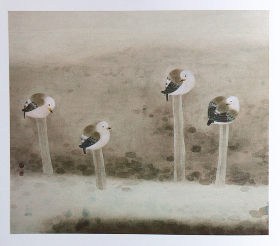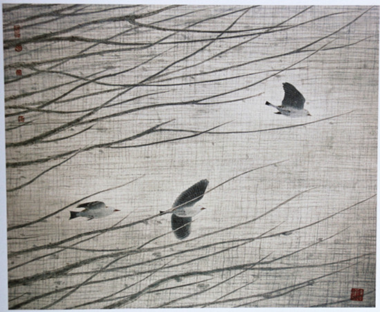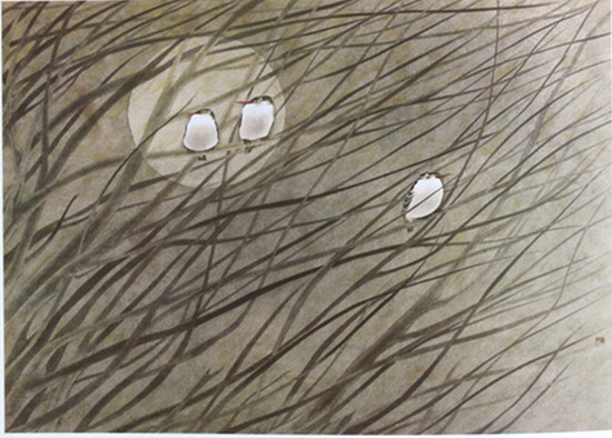 寒月三鸟 43.5CMx60.8CM 1987年